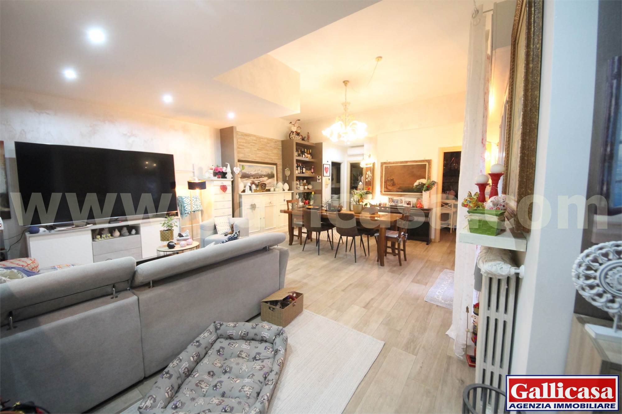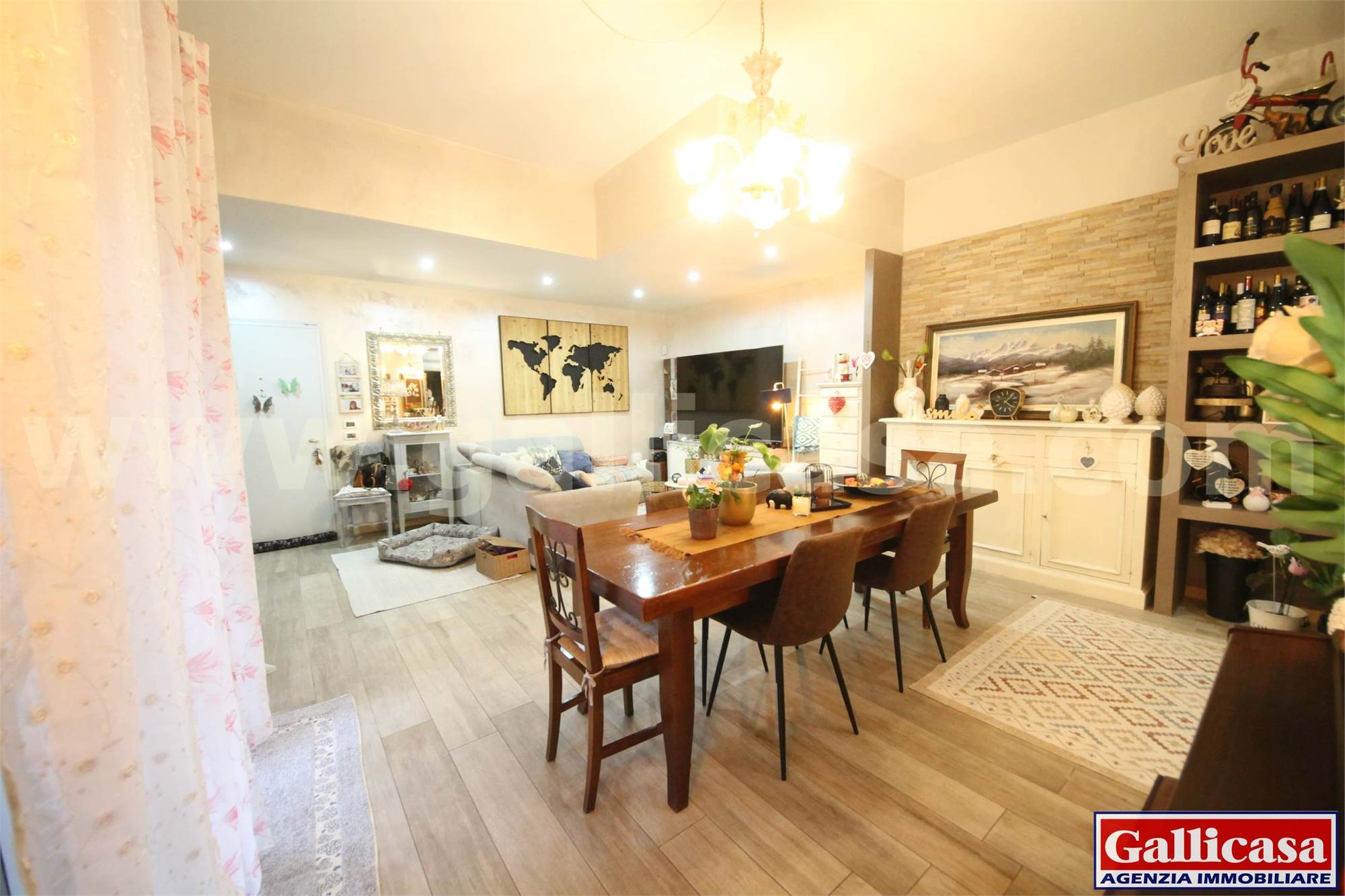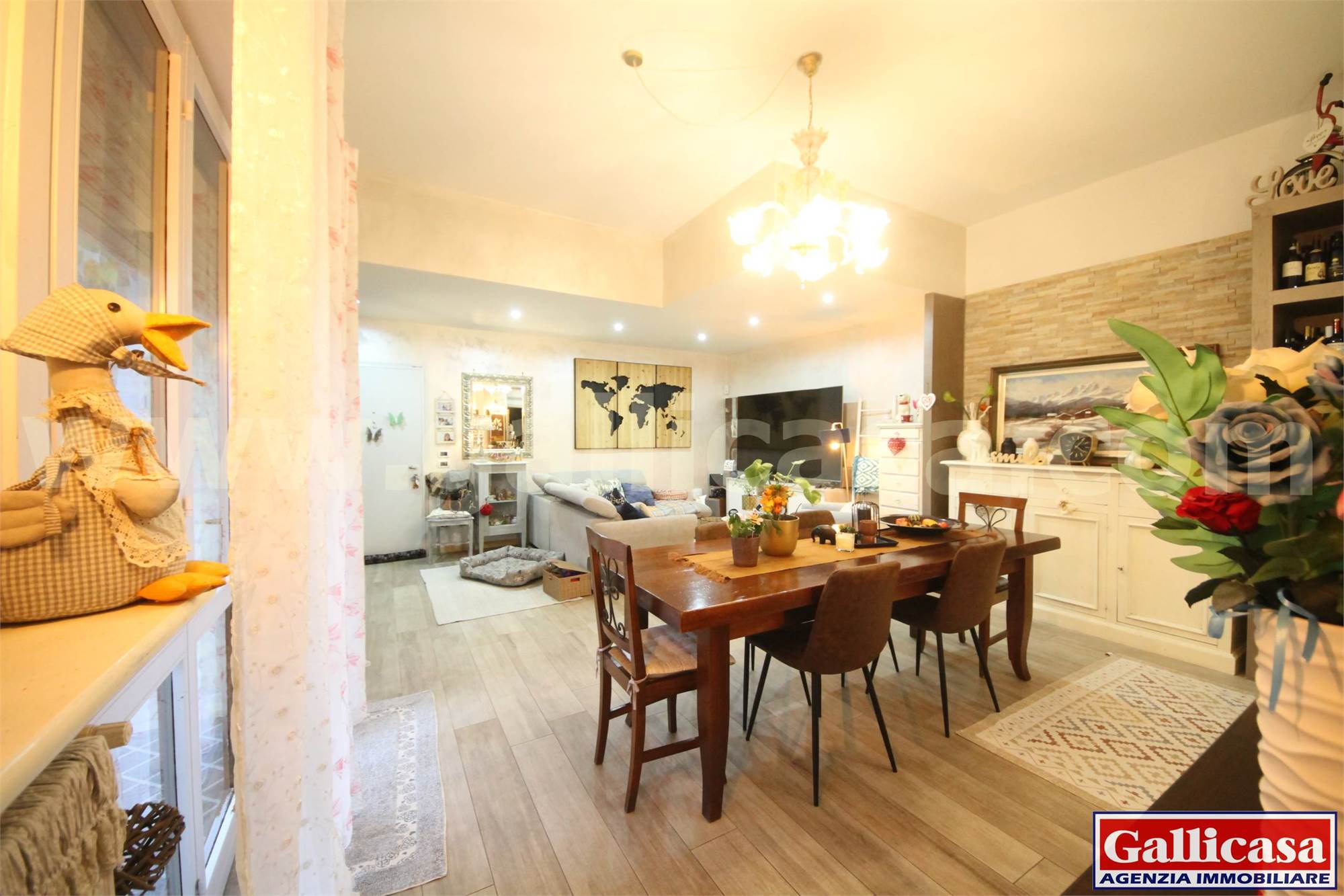 L’ingresso si apre su un ampio e luminoso soggiorno con accesso diretto alla loggia coperta e all’ampio giardino privato, ideale per momenti di relax e convivialità.