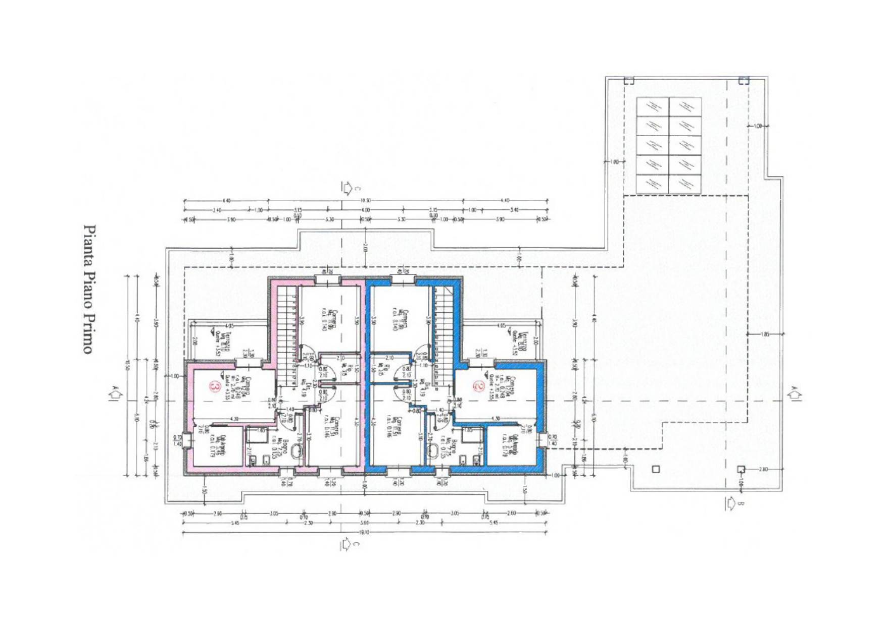 Attraverso una comoda scala interna si accede al primo piano, dove si sviluppa la zona notte composta da tre camere da letto, di cui una con cabina armadio, un secondo bagno con box doccia, un pratico ripostiglio e un terrazzo ideale per i momenti di relax all'aperto.